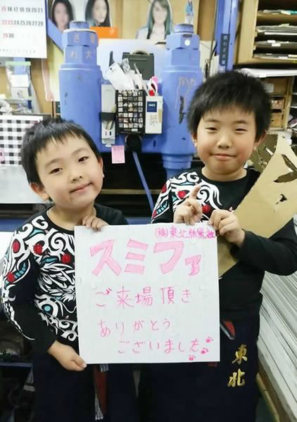 ▲息子さん(小1と小4) 何十年後は、彼らが東北紙業社の4代目!?かも!?