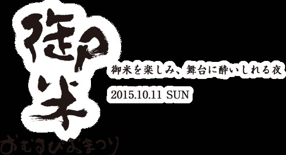 「笑むすび~from 會津」と「NPO法人チームいただきます」による食と芸能を堪能するイベント。 日本人の「生きる=食べる」原点である「御米」の収穫を喜び感謝するというコンセプトで、プレスや伝統文化関係者などを中心に80人ほどの来場者を数えた。日時: 2015年10月11日(日) 開場 16:00~ 終了20:45